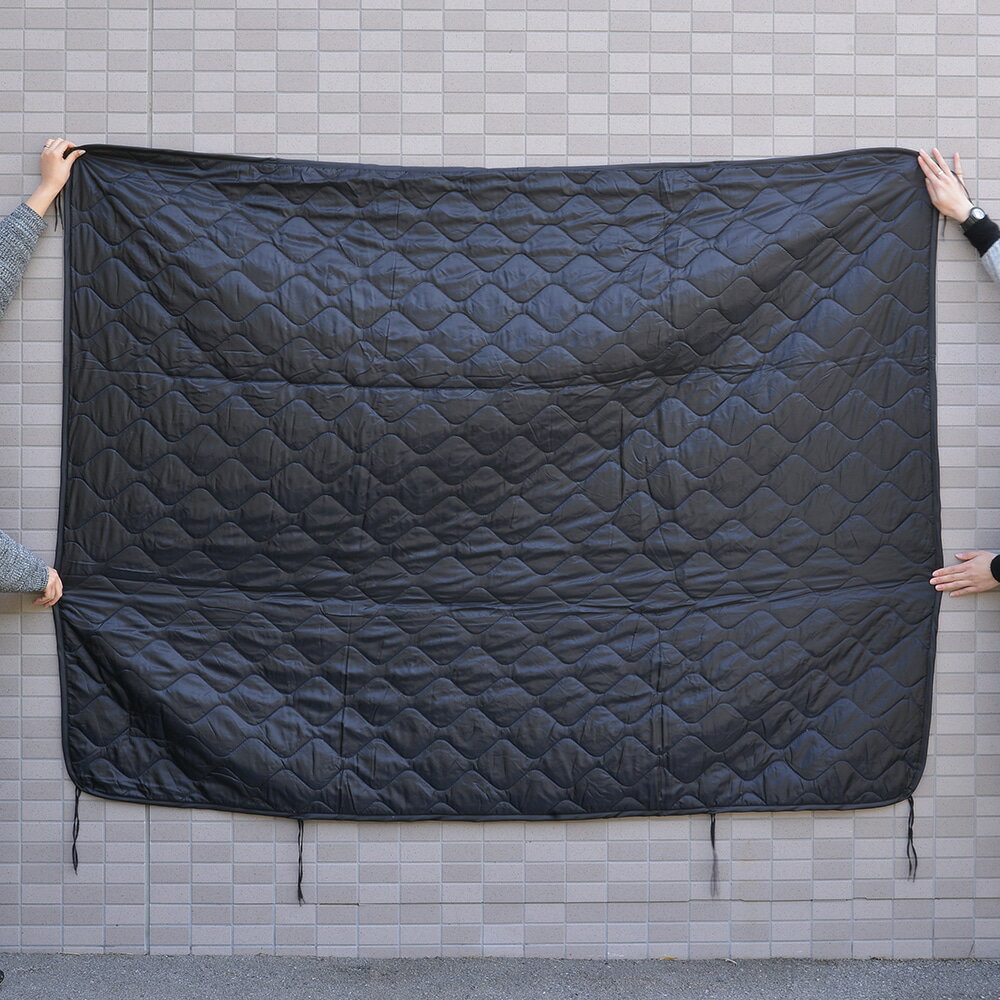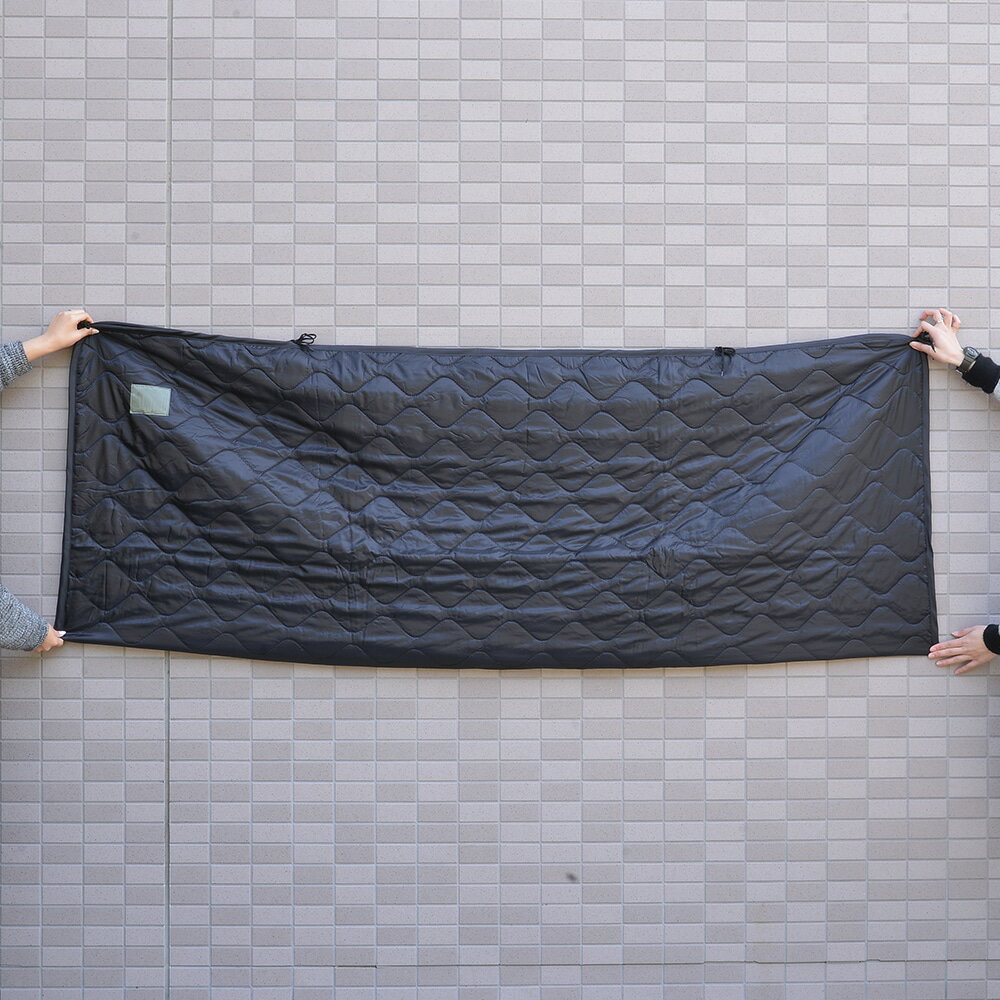 軍用のG.I.ポンチョライナーをモデルに作られており、本製品をポンチョとつなぎ合わせる事で、寝袋やブランケットとして使用が可能となっています。