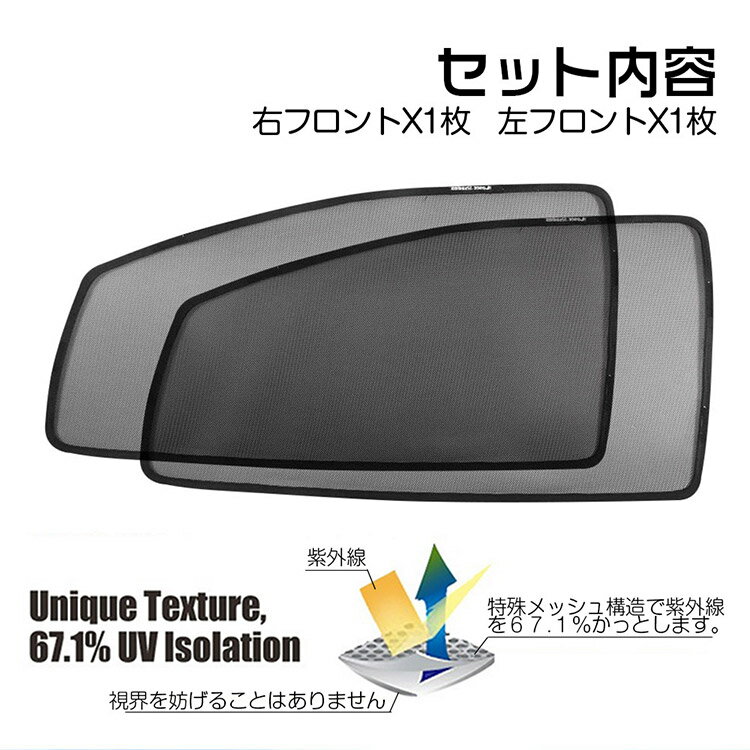 ) 商品仕様: ●状態:新品 未使用 ●商品セット: 右フロント X1枚 左フロント X1枚 商品特徴: ●高い熱遮断率と省エネ:メッシュ仕様ですので高い熱遮断率を持ち、車外からの日差しをシャットアウトし、エアコン動力を軽減、燃費の向上に役立ちます。