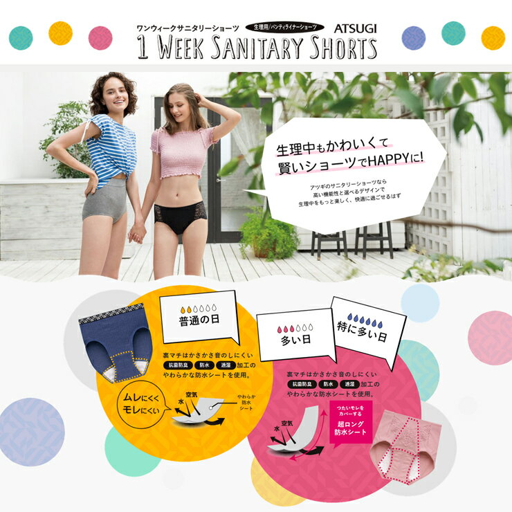レディース サニタリーショーツ アツギ 多い日 87413AS フロントレース 超ロング防水シート atsugi サニタリー パンツ ショーツ 生理 パンティー 防水 レース 昼 会社 女子 婦人 仕事 羽 フィット (03668)
