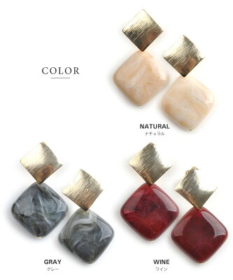 スクエアメタルとマーブル模様のカラーストーンが しっとり艶めくピアス/イヤリング。